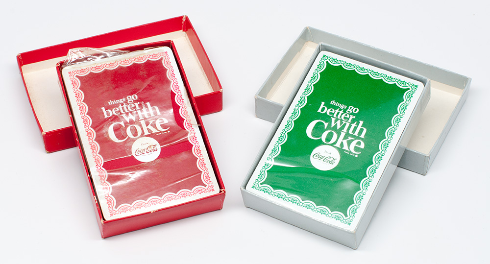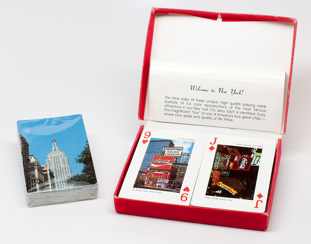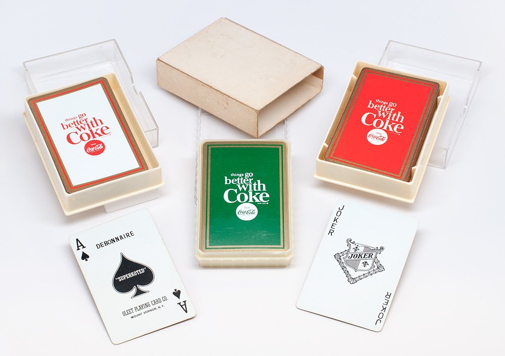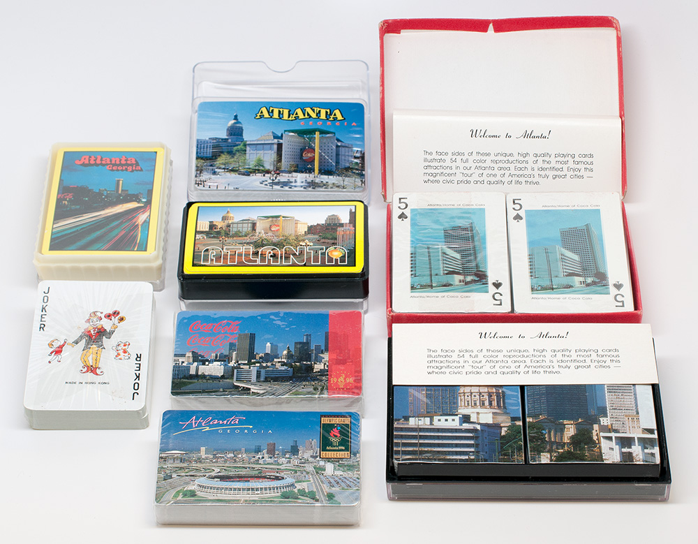 View in GalleryThere are a variety of decks of Atlanta Georgia that have the Coca-Cola building on one or more of the cards. A number of those decks are shown here. There are also decks of New York City with a Coca-Cola card, also pictured. And there was a set of single and double decks produced in conjunction with the New York City World’s Fair in 1964, with one card having a Coca-Cola theme.