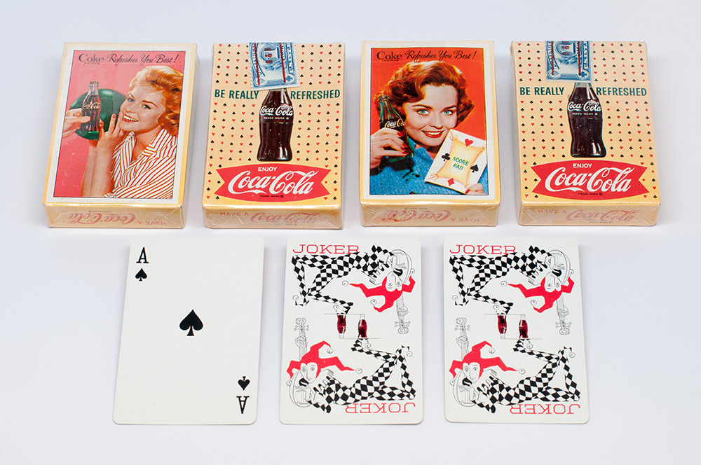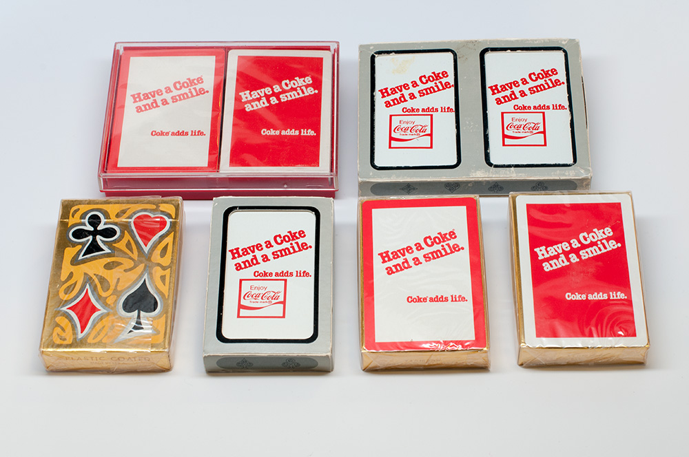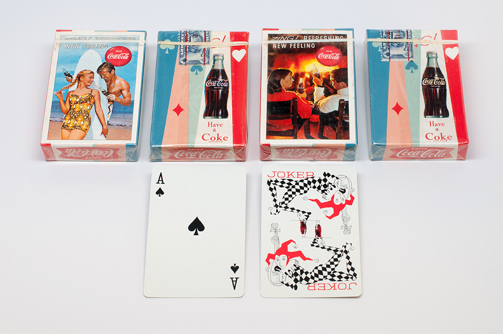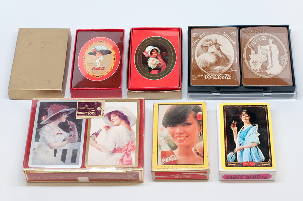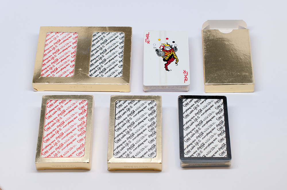 View in GalleryOver the last three or four decades the Company began to intentionally produce decks either to be sold as novelty items or to collectors. These are available in large quantities and in my opinion have no value. As you can see some of these decks reproduce older, original advertising images. Some are associated with other companies, for example, the Southwest and Delta airlines decks. Also included are the large variety of “Enjoy” and “wave” decks, as well as a number with a can image on the cards. These date from the 1960s forward and there are many types of boxes, trademark and logo styling and other variations.