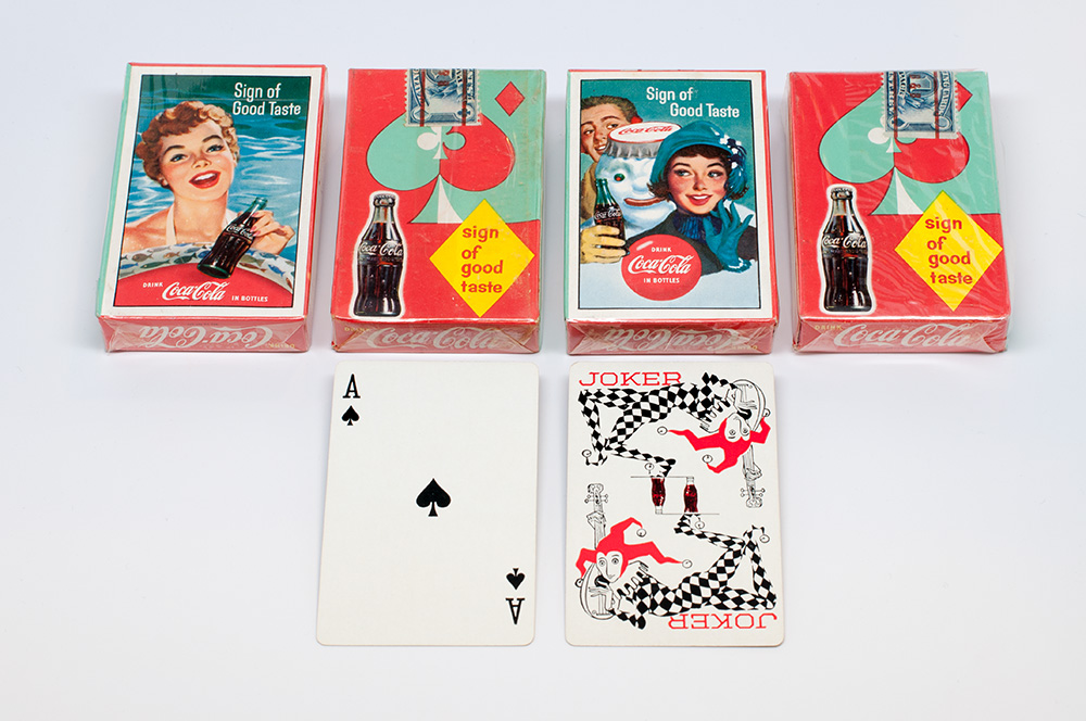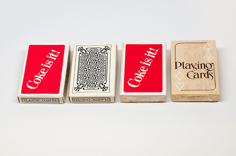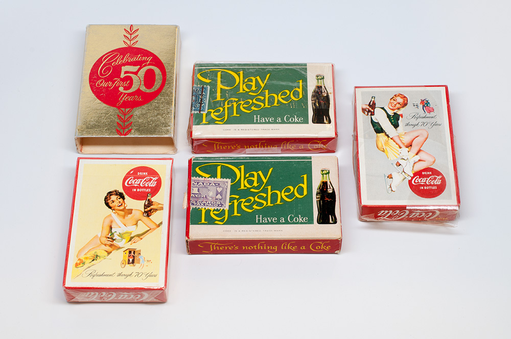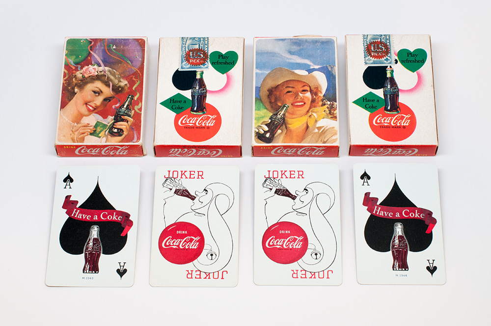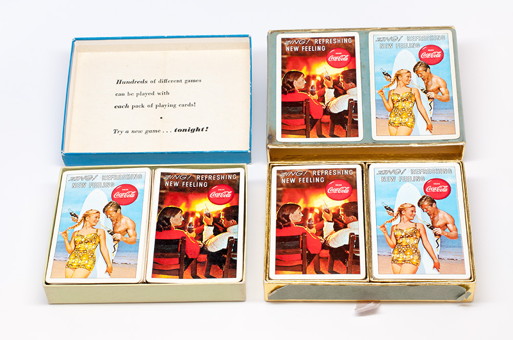 View in GalleryOver the last three or four decades the Company began to intentionally produce decks either to be sold as novelty items or to collectors. These are available in large quantities and in my opinion have no value. As you can see some of these decks reproduce older, original advertising images. Some are associated with other companies, for example, the Southwest and Delta airlines decks. Also included are the large variety of “Enjoy” and “wave” decks, as well as a number with a can image on the cards. These date from the 1960s forward and there are many types of boxes, trademark and logo styling and other variations.