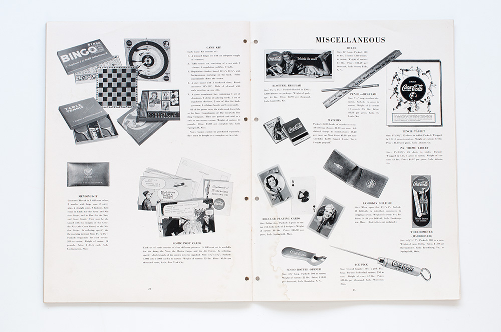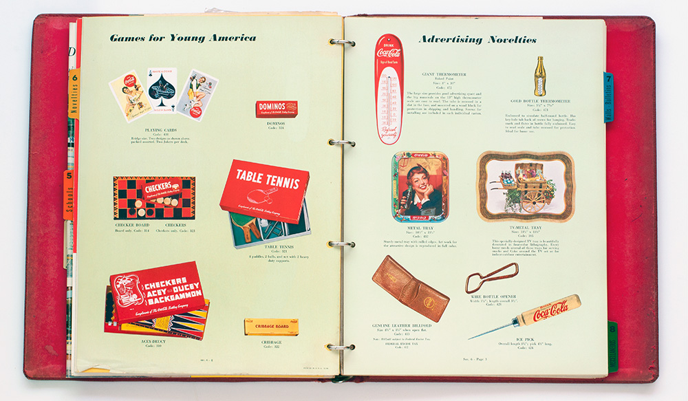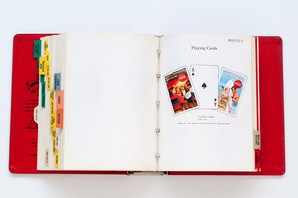 View in GalleryI have five items from various Advertising Price Lists pictured here. The first is from a manual dating to the late 1960s, I believe. These manuals were typically used over several years with updated material constantly inserted. This particular red manual had the girl with bowling ball and the girl with bridge cards decks available. No pricing information was actually in this manual. The second is from the early 1960s as best I can tell, and features the surfer boy and girl and the man and woman by the fireside decks. The pricing is available and the decks came in packages of 72 and were forty-four cents a deck to the bottler. The third dates to 1943 and shows both the operator and nurse score pads, as well as aircraft spotter versions of these decks. The autumn leaves and stewardess decks were also listed. Packaging was the standard 72 decks, at a cost of $47.52 for the entire package. It is not specified here that any non-spotter nurse or operator decks were included in the package and as I noted in the discussion of these decks, like most they were produced over a long period of time and I suspect that after the war the Company stopped making an aircraft spotter version. The fourth picture is of a 1945 price list and shows the autumn leaves and stewardess decks only, again 72 deck packages at the same price. Since the war was winding down by now, that may explain why the operator and nurse decks are not listed. The final picture was from a manual insert dated February 1960 which listed the skater and beach girl decks, once again in the 72 decks to a package format and at forty-four cents a deck.