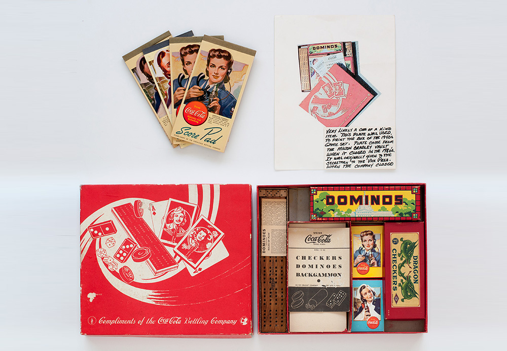 View in GalleryThis is a World War II era box set of various games, which includes two decks of cards, the nurse and phone operator in the aircraft spotter versions, and also includes some score pads. At one point I had a printer’s plate for the box cover and part of the picture shows a picture of that plate and some information about it.